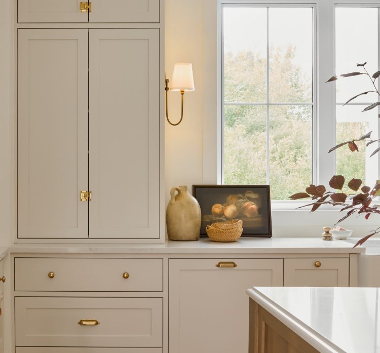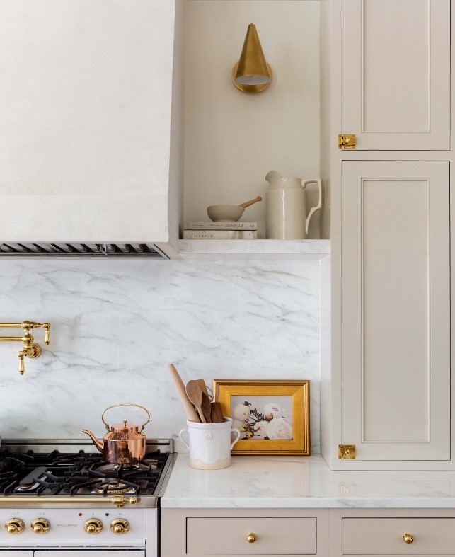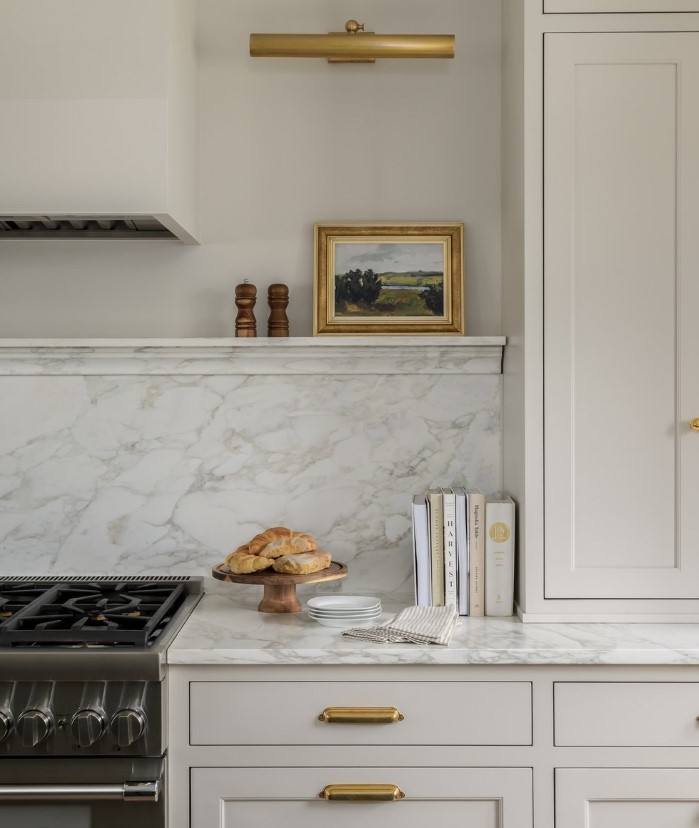Have you noticed lately in every styled kitchen a little piece of art pops up somewhere? Art has been displayed in European kitchens forever, and it’s a layering technique we’ve seen in domestic kitchens for a few years. Framed art adds warmth and character to a space so naturally designers and stylists use art as alluring decor in kitchens.