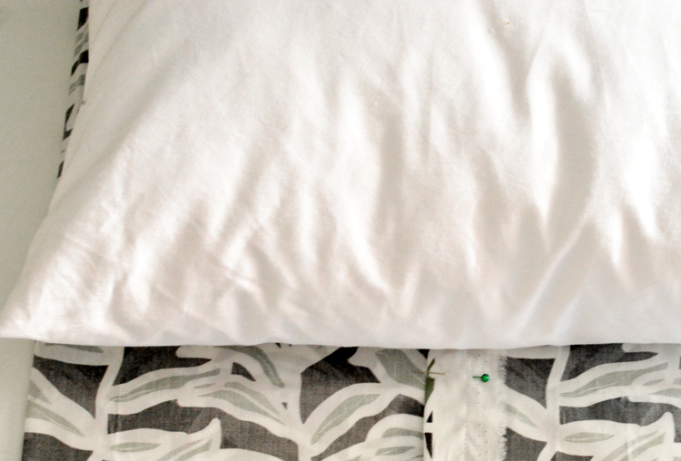 Before I sew the cover, I like to lay the pillow insert on top once more to confirm the placement of the seams for sides 3 and 4 so I know when I’m done they will be the right size for the pillow cover.