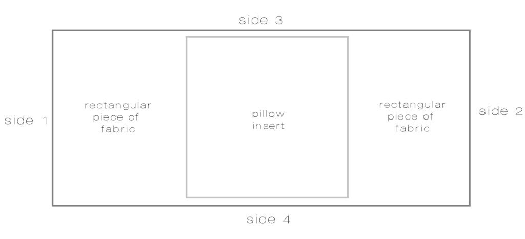 You need a piece of fabric wide enough to wrap around your pillow insert with a few extra inches to overlap on the back and form the pocket opening. For example, if your pillow insert is 20”, you’ll want to cut a piece of fabric that measures approximately 48” wide (sides 3 and 4). Those extra eight inches allow for fullness and to wrap around the pillow to form the overlapping pocket. Sides 1 and 2 should be cut to 22” in length, allowing an inch of extra fabric around the top and bottom of the pillow.