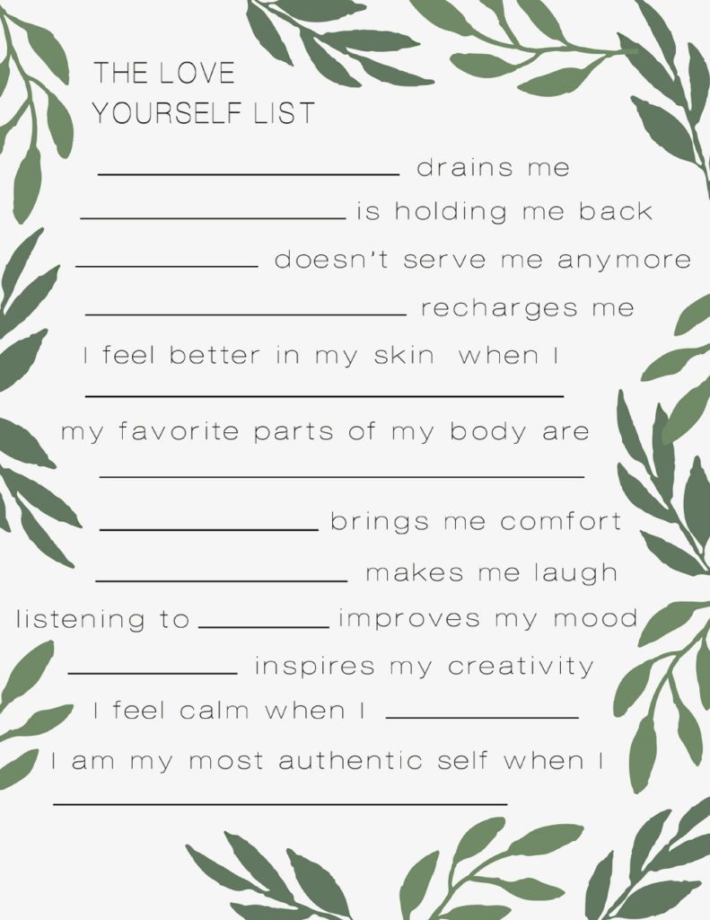 I’ve become very good at recognizing what empties my cup and what fills it. Naming these things has become a weekly ritual for me and keeps me focused on what needs to be removed from my life, and what I need more of in order to thrive. I’ve discovered that truly loving myself requires me to ask myself some important questions.