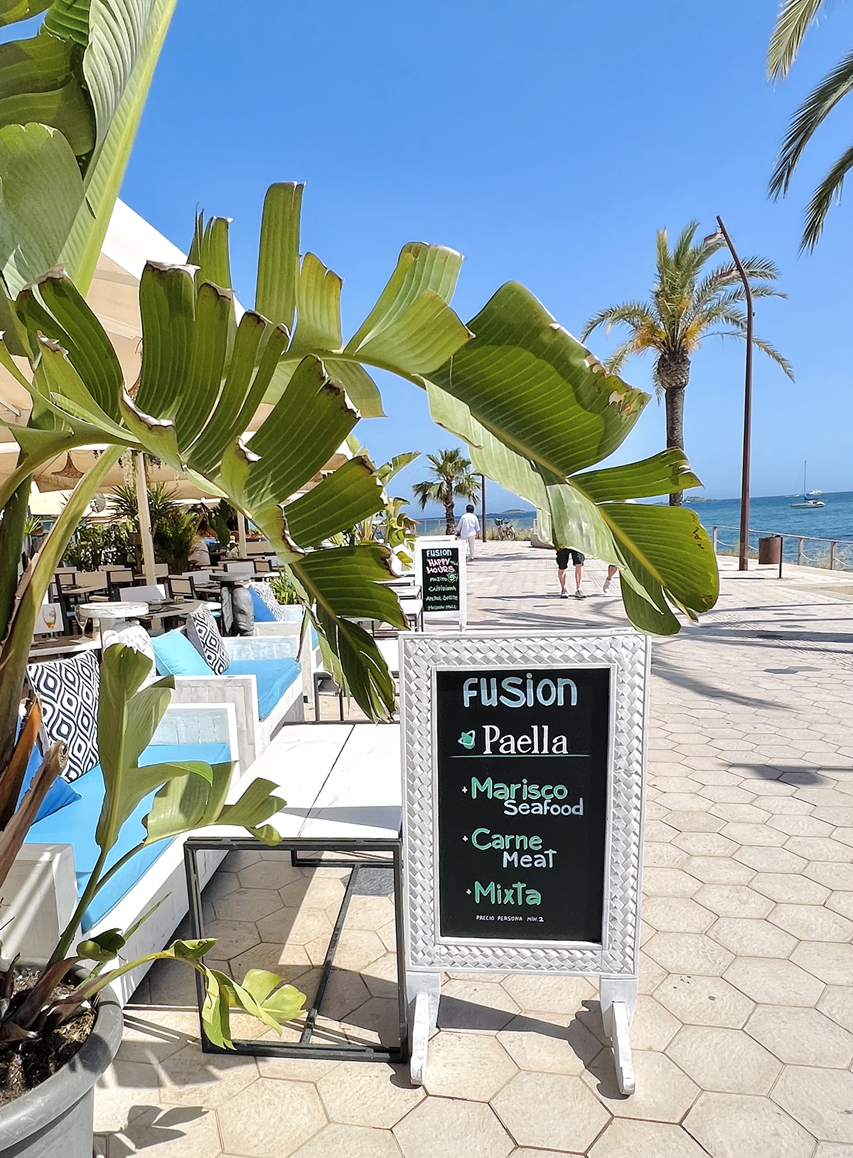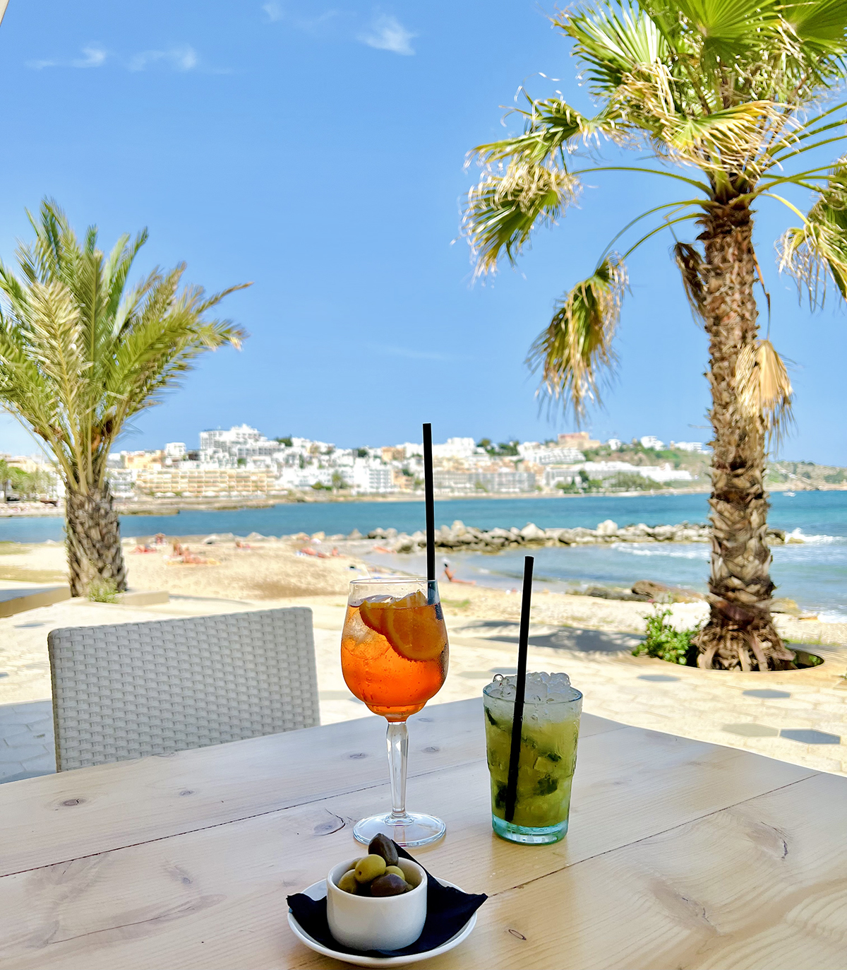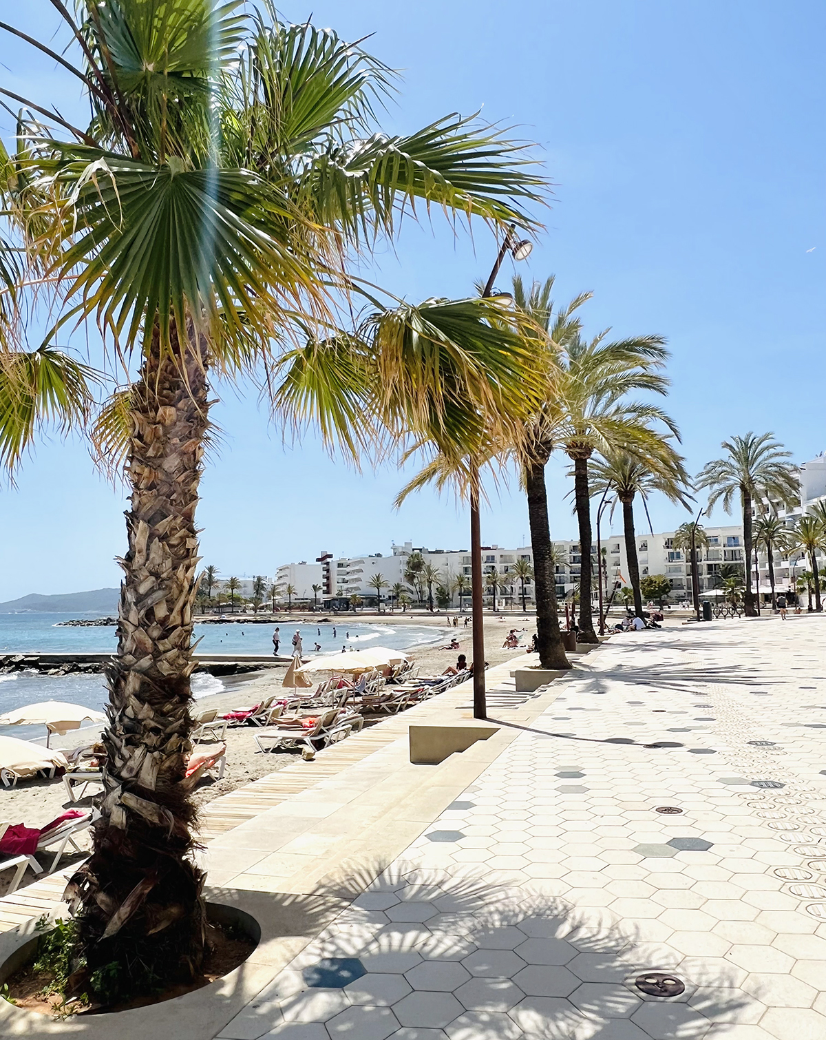 There’s a more modern business and residential section of Ibiza to the west which we walked to on foot after showering at our hotel. The promenade follows the curved shape of the beach and there are restaurants and bars where you can casually sip cold drinks and stare at the Mediterranean waters and beachgoers taking advantage of the sunshine and soft waves.