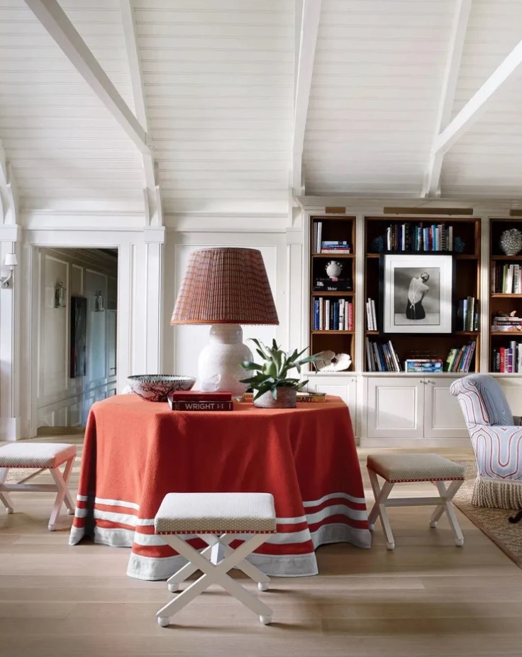 Red can be seasonal beyond the Christmas holiday, consider a tablecloth, pillow, art print, plates or table linens as a temporary color injection for summer.