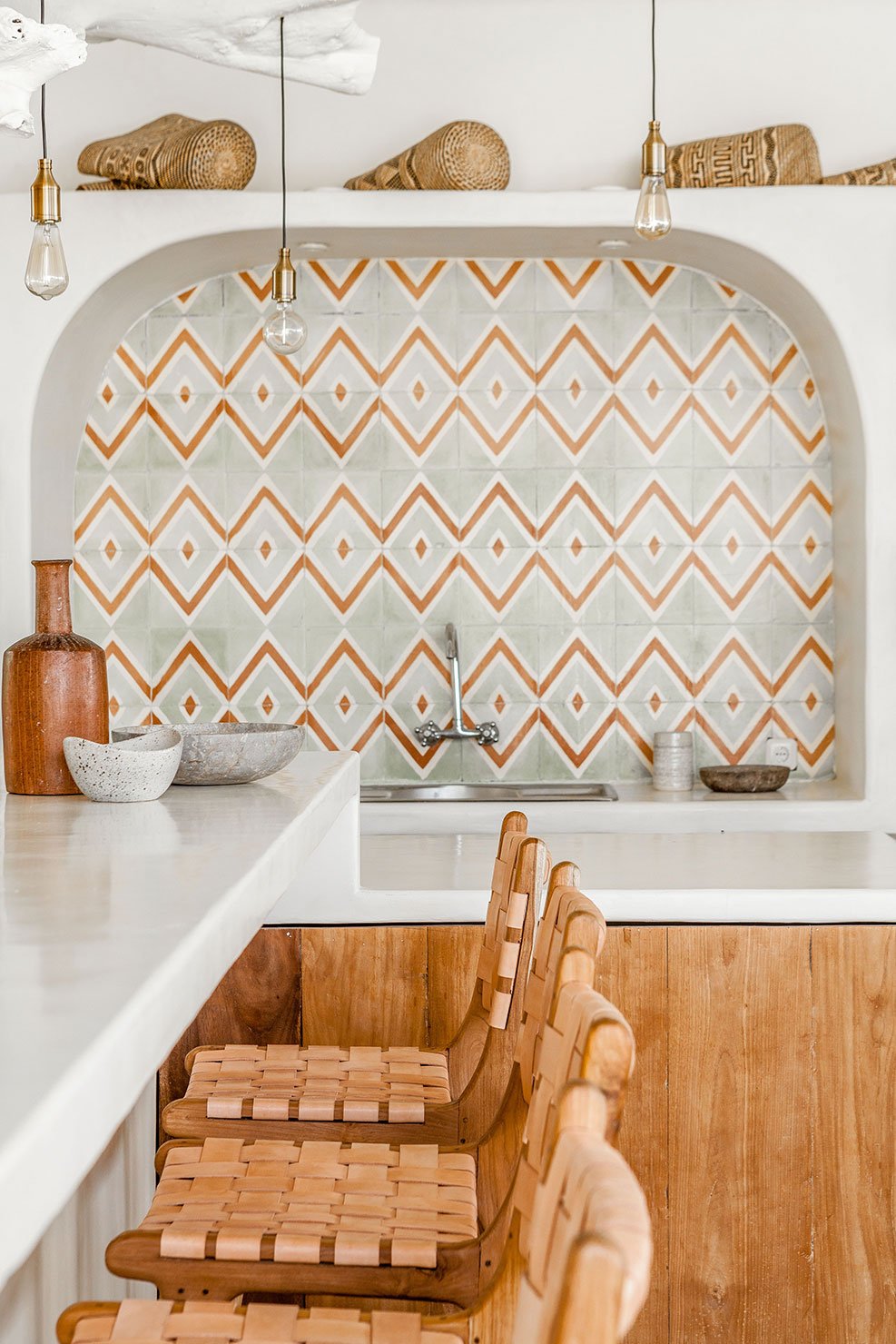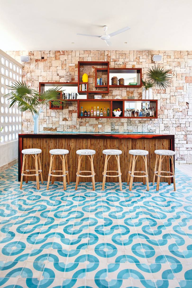 4. Choose a cheerful color instead of a neutral tile for your bar or peninsula.