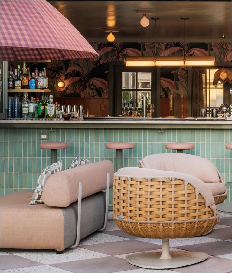 Oh how destinations inspire me, whether I’m present at a new and unique place or dreaming from browsing online. I adore eating and drinking establishments that use tile in a dramatic way, I pin all the ideas for future renovations and bookmark them to refer back to them if renovating a kitchen, bathroom, or outdoor space.