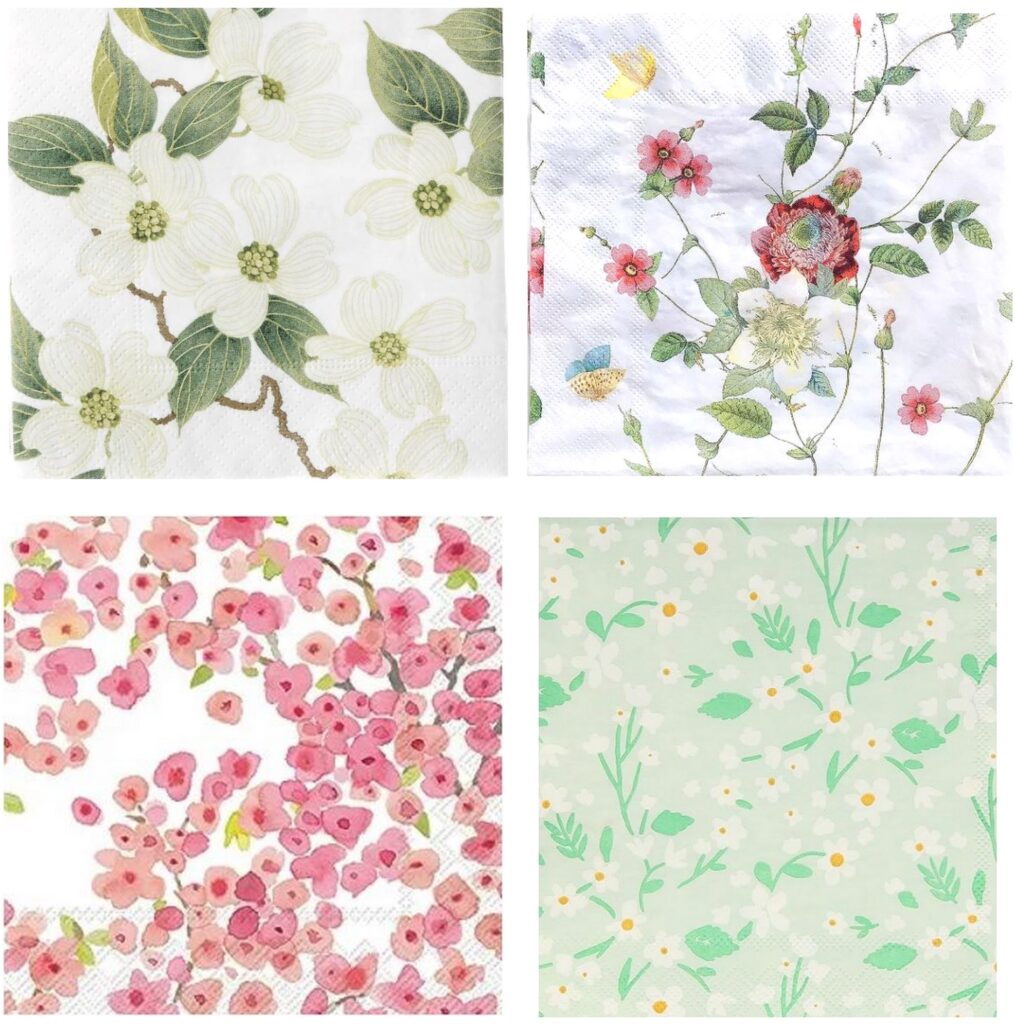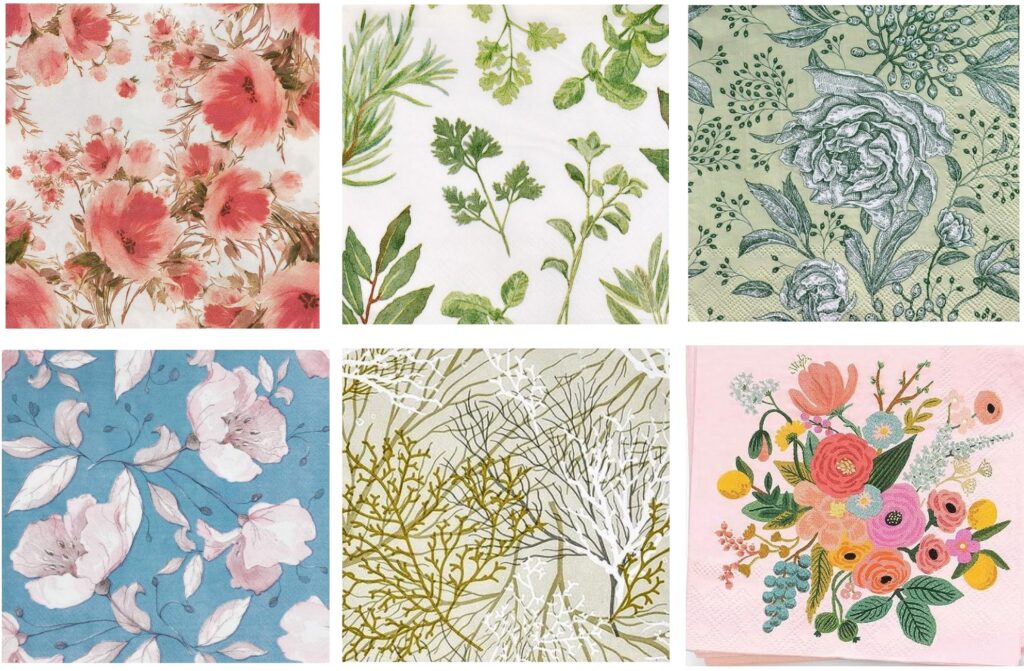 I had some leftover patterned paper napkins from this vase project, so I ordered two more packages of napkins for this round.