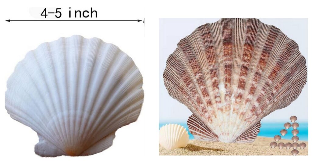 4-5 inch white scallop / 5-6 inch lion’s paw scallop