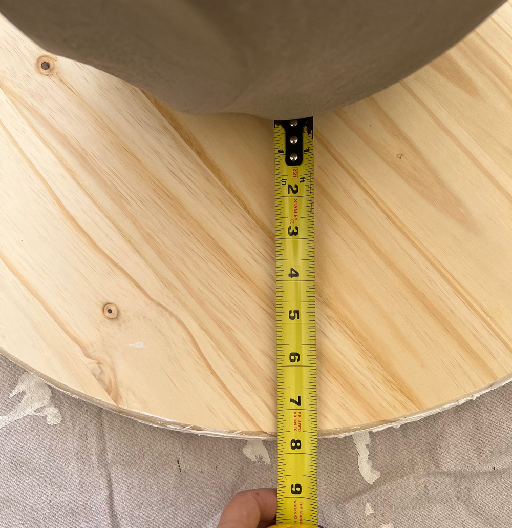 Once dry, mark the underside of the wood circles with the location of the pedestal in the center for attaching in the future.