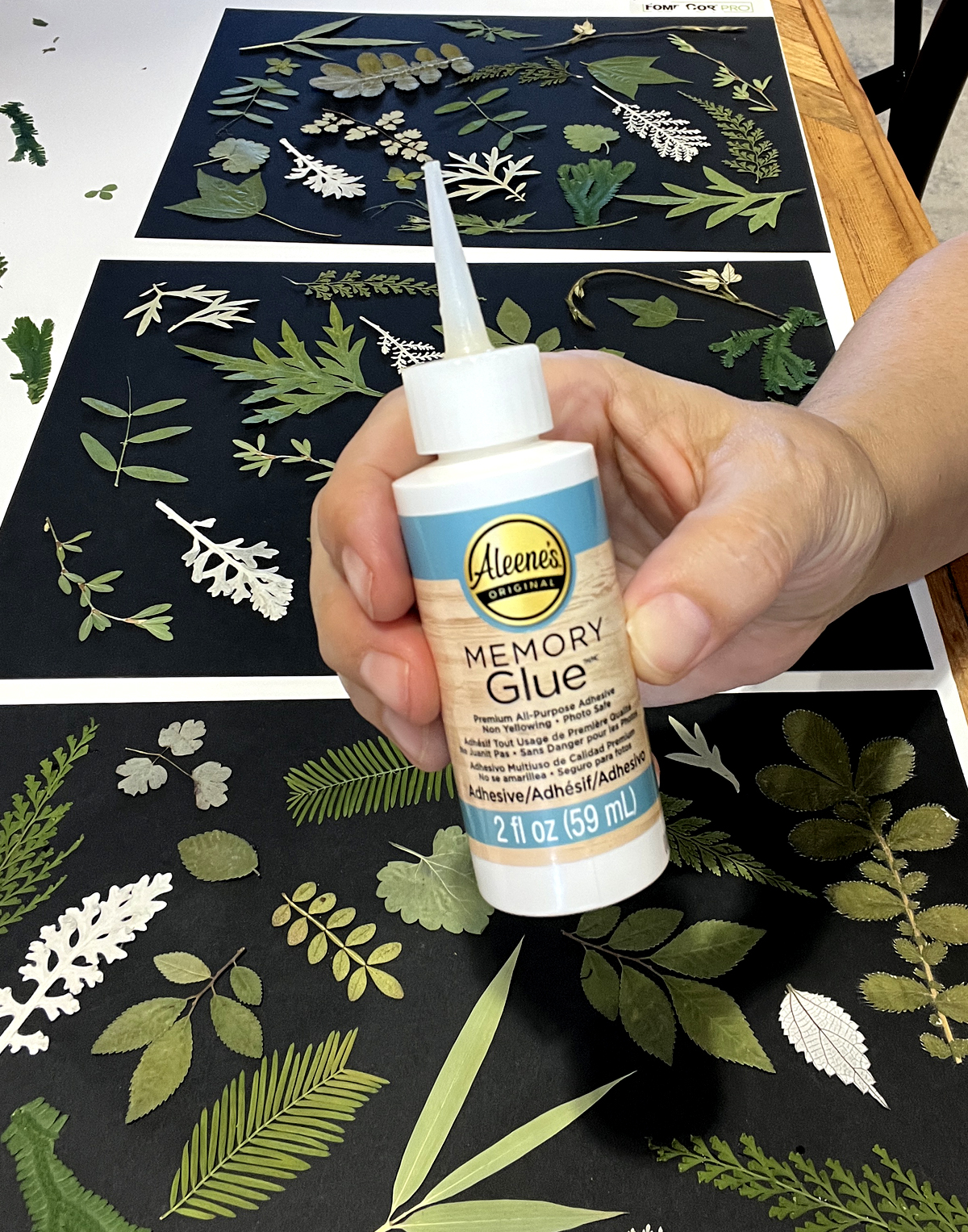 Make sure to use acid free glue and paper so the pressed leaf art will last for years to come. I found my glue at Michael’s on clearance but you can also find similar glues in scrapbook sections of craft stores or online.