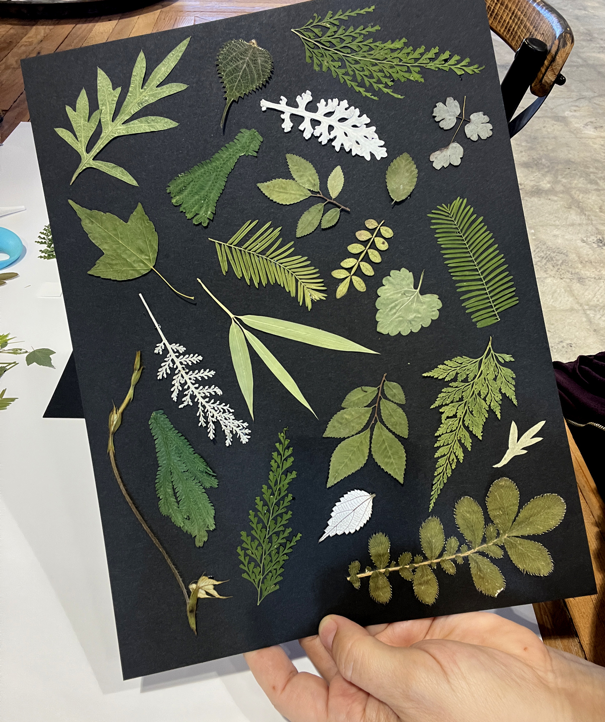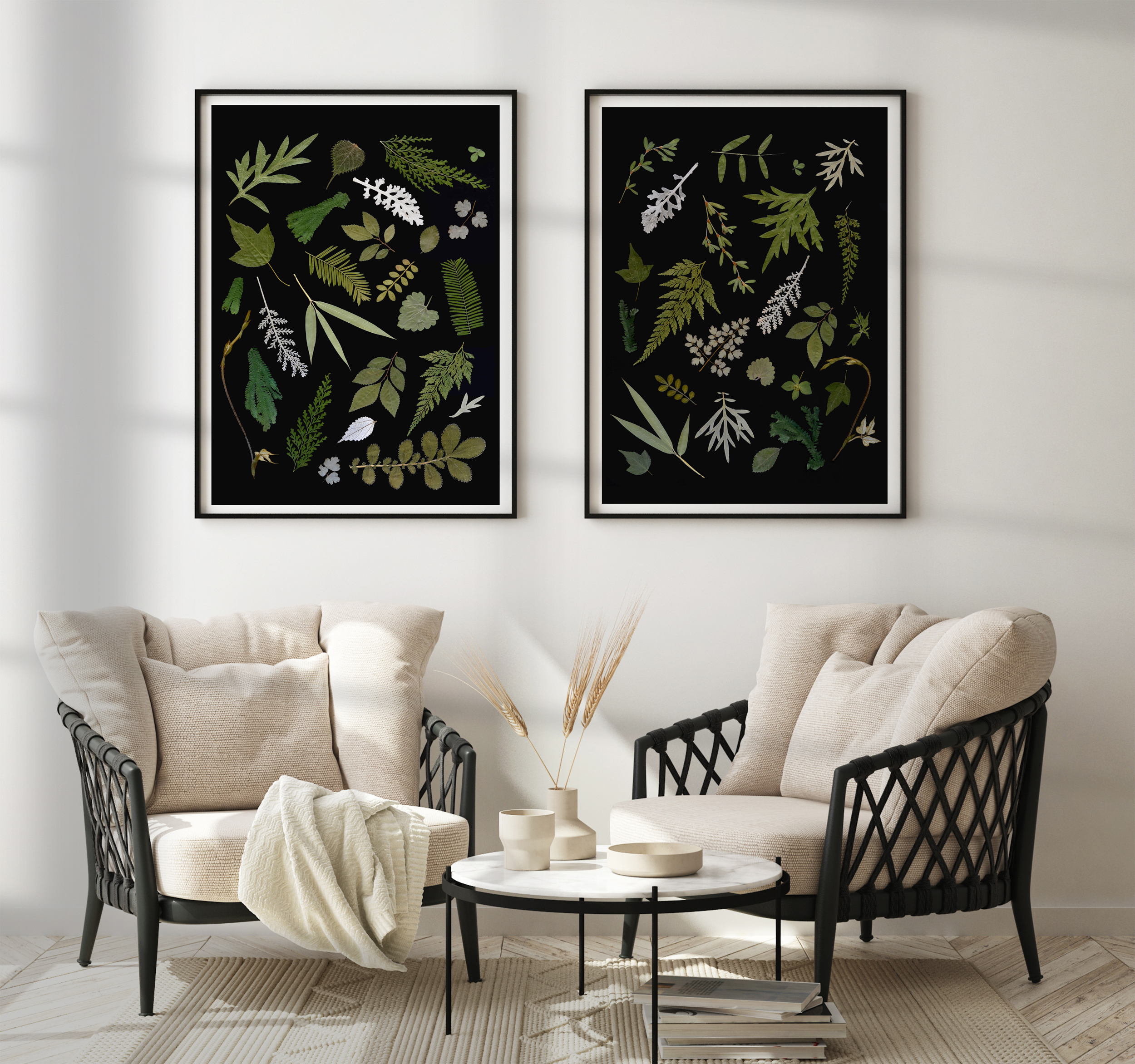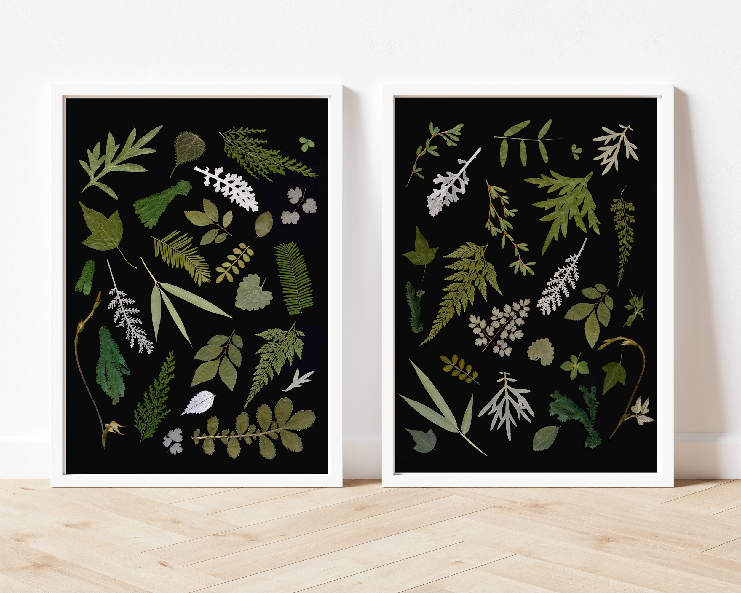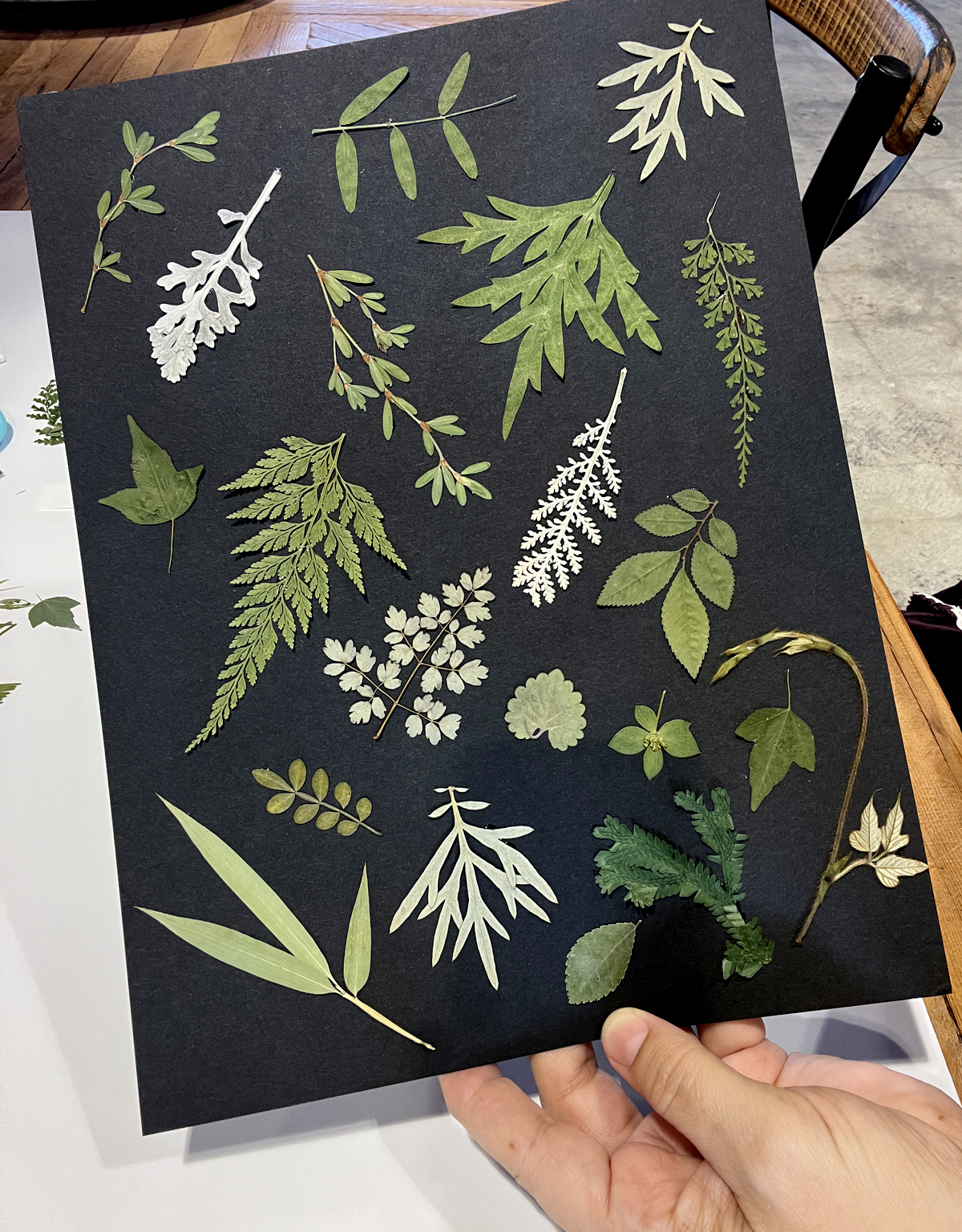 Pressed flowers and leaves have a classic appeal, so I thought I’d try my hand and making a few with green leaves on a black background. I’ve seen pressed flower pieces on Etsy with a white background or inside a clear frame. Black backgrounds highlight green botanicals so beautifully so I chose black art paper for this project.