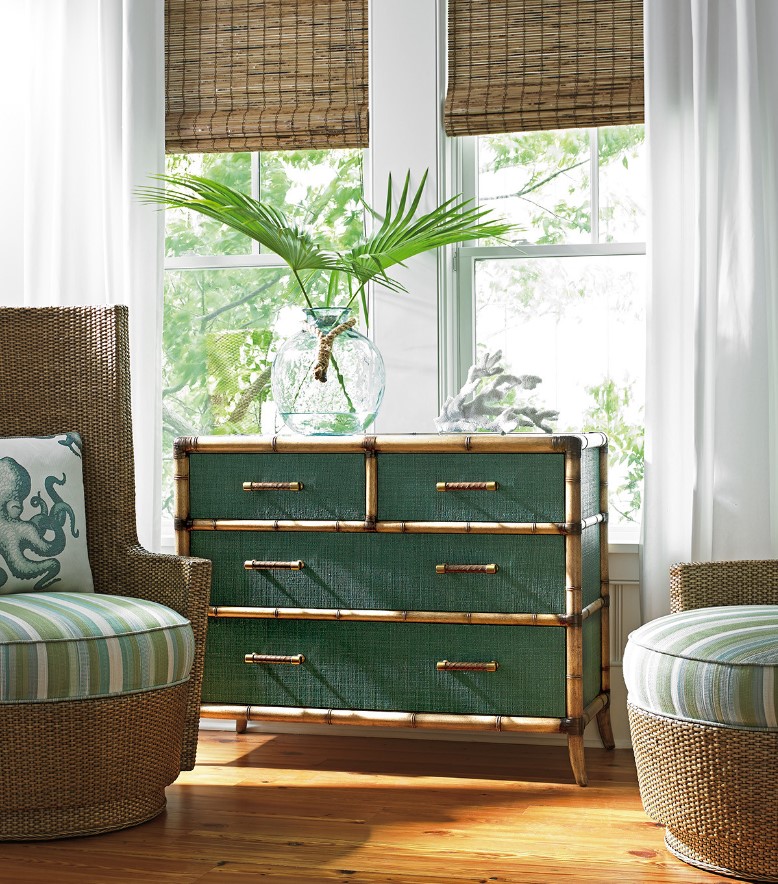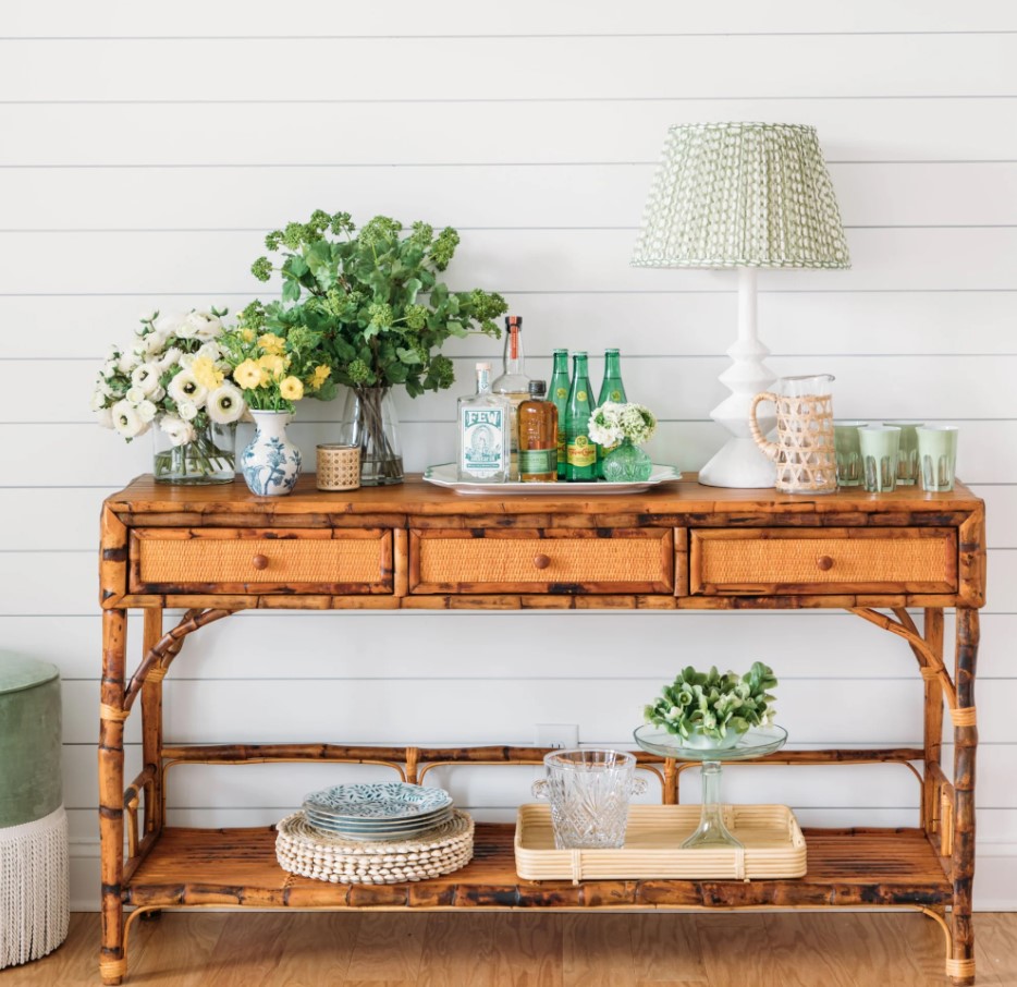 Bamboo is associated with chinoiserie style and also used on repeat in homes in a Palm Beach aesthetic or coastal design. These examples below prove how impactful a singular piece of bamboo furniture can be.