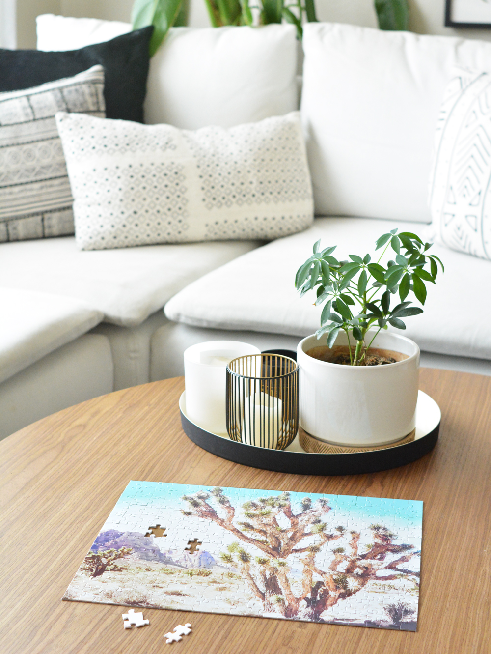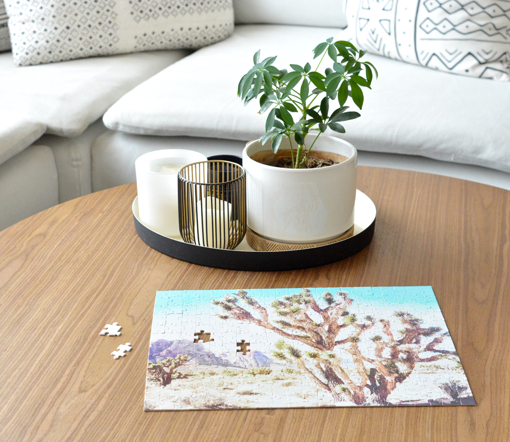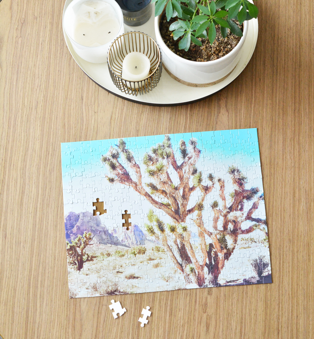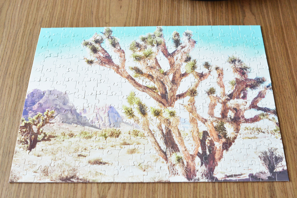 I had a jigsaw puzzle made with my Joshua Tree art print, also one in beach waves and another with surfboards. All you need to do to make your own is upload any of your images to the site, place an order, and your custom puzzle arrives in a week.