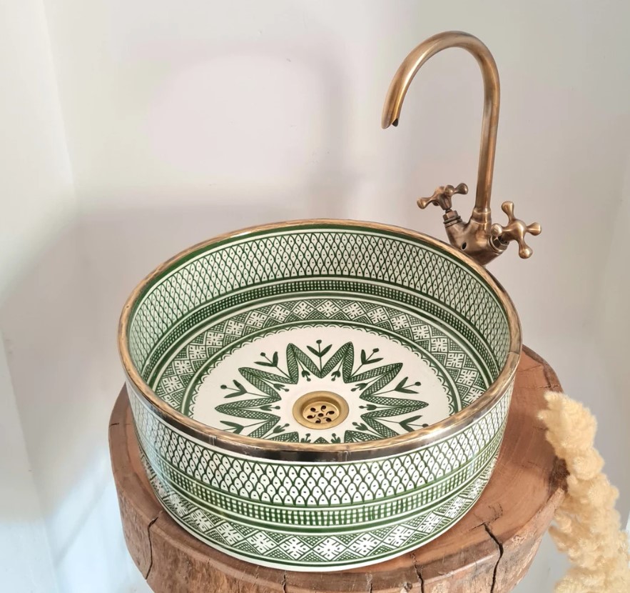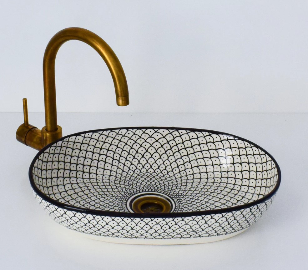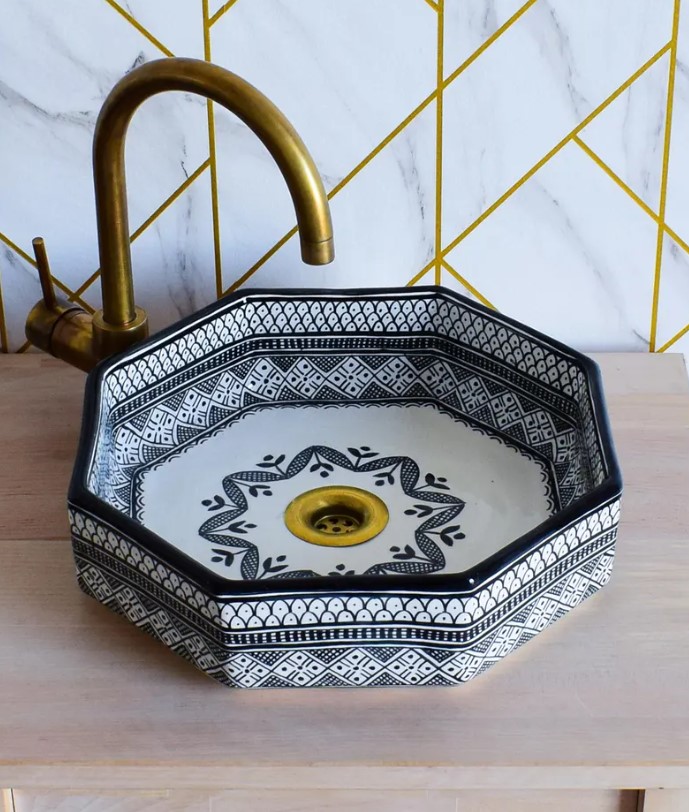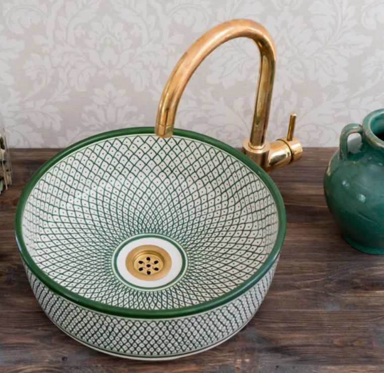 These vessel sinks elevate a powder room because they’re a guaranteed conversation piece, they remind one of traveling abroad. For the sixty seconds spent washing hands, one can’t help but be mesmerized by the motifs. Add a European or Moroccan vibe to your bathroom with any of these marvelous vessels with the prettiest patterns.