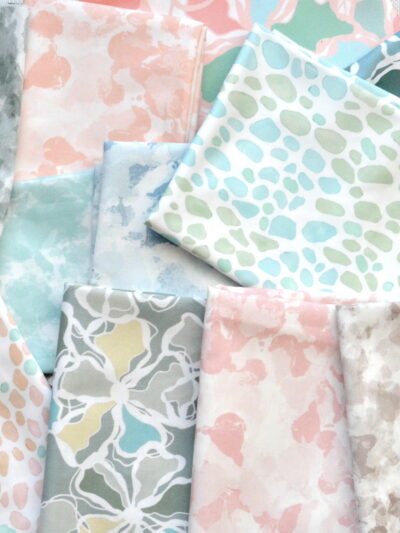 My Summer Vine fabric is available in eight colors! Five have a solid background, olive, ebony, taupe, apricot, and azure…
