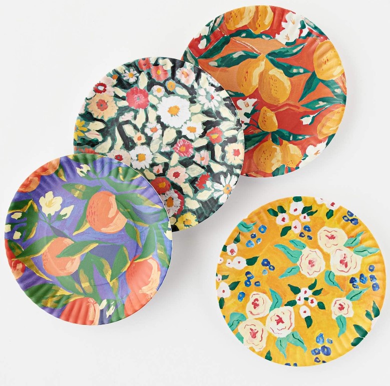 Charming patterns are now available to give a glow up to your alfresco dining adventures, or even just your simple meal on the porch or patio. Hose them off at your campsite or in the yard and they’ll retain their attractiveness and utility, no need to worry about cracks or chips like with ceramic or porcelain.