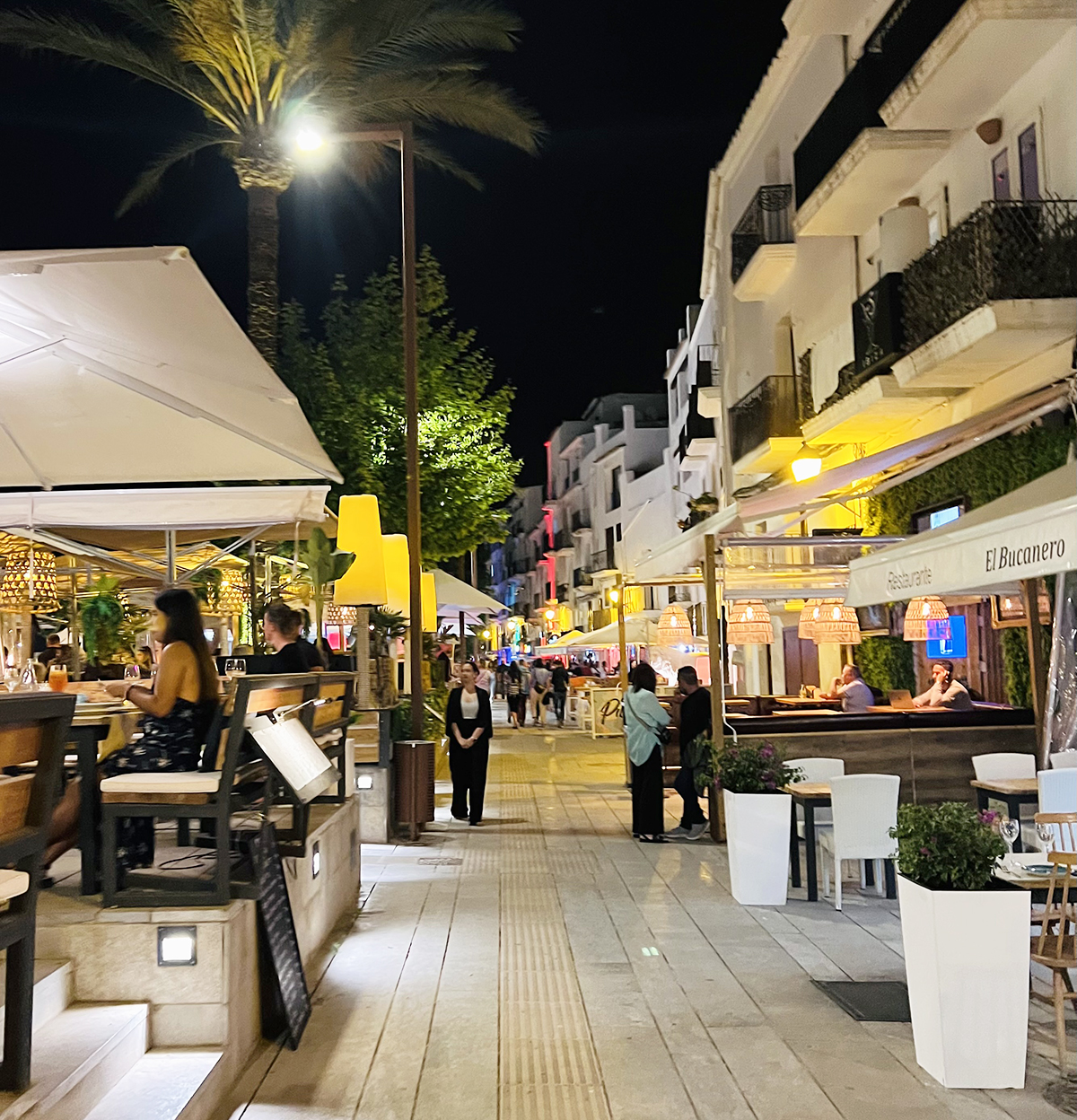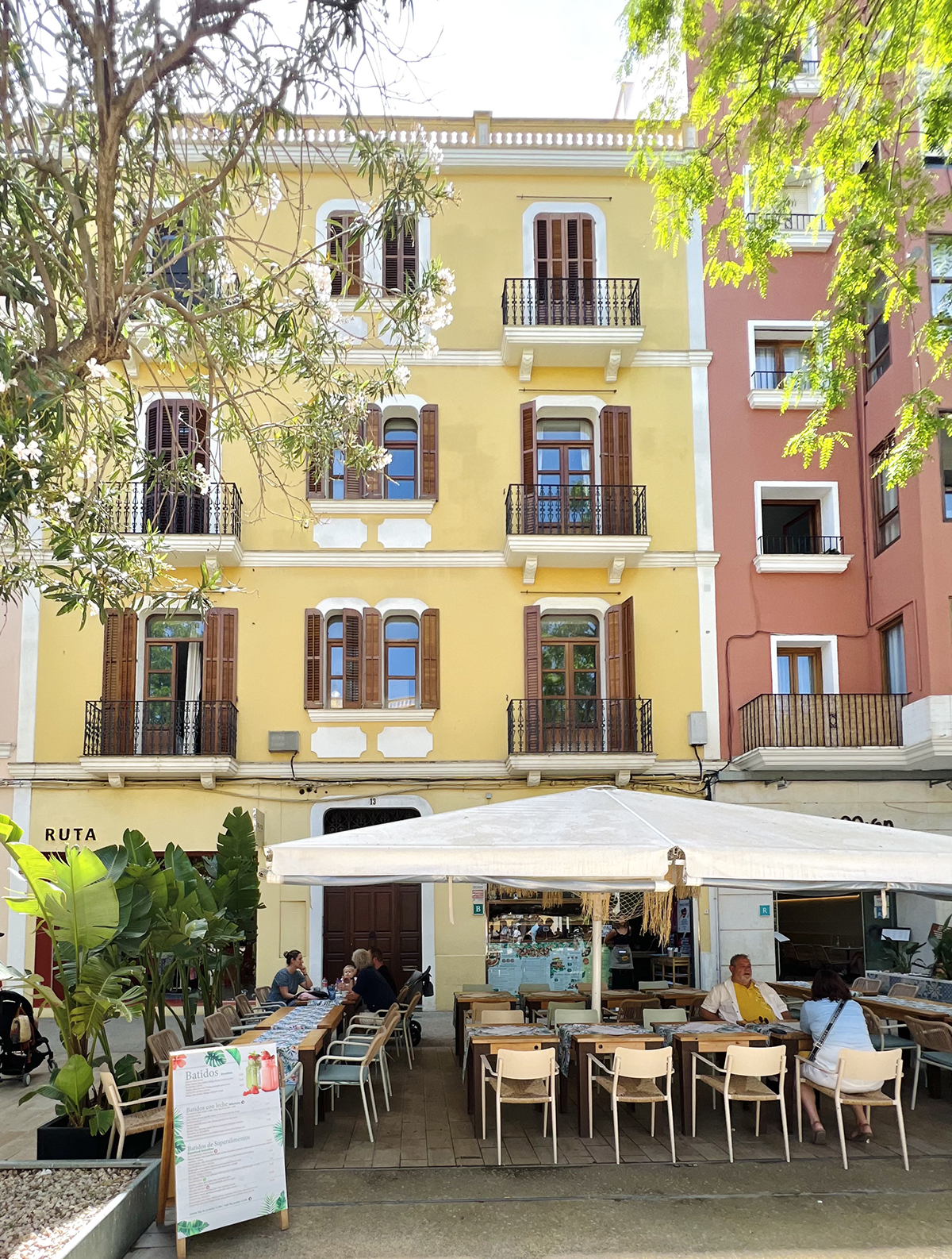 Once we made it back in Ibiza by ferry, we strolled the Vara de Rey and the surrounding streets where you’ll find great shopping (both casual and upscale) and outdoor cafes set against the backdrop of the architecture in a mix of whitewashed and pastel hues.
