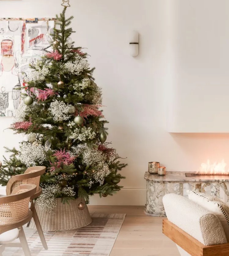 The minimalist neutral holiday decor in this London home is simple and calm.